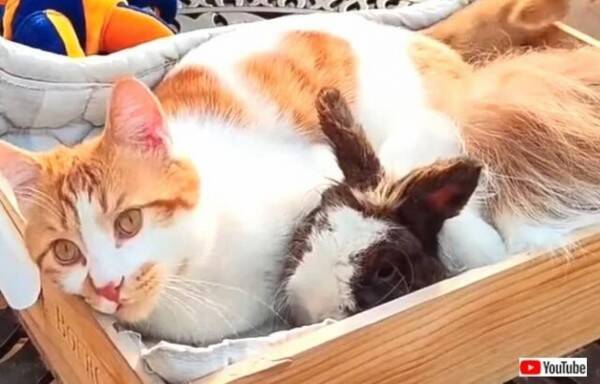 いつも一緒がいいニャンコにピッタリくっついて離れないウサ 猫のビビくんは1歳の男の子。 このウサギ何とかしてくれへん」「ウサギも猫も可愛い 」「でも最後の一瞬だけ、